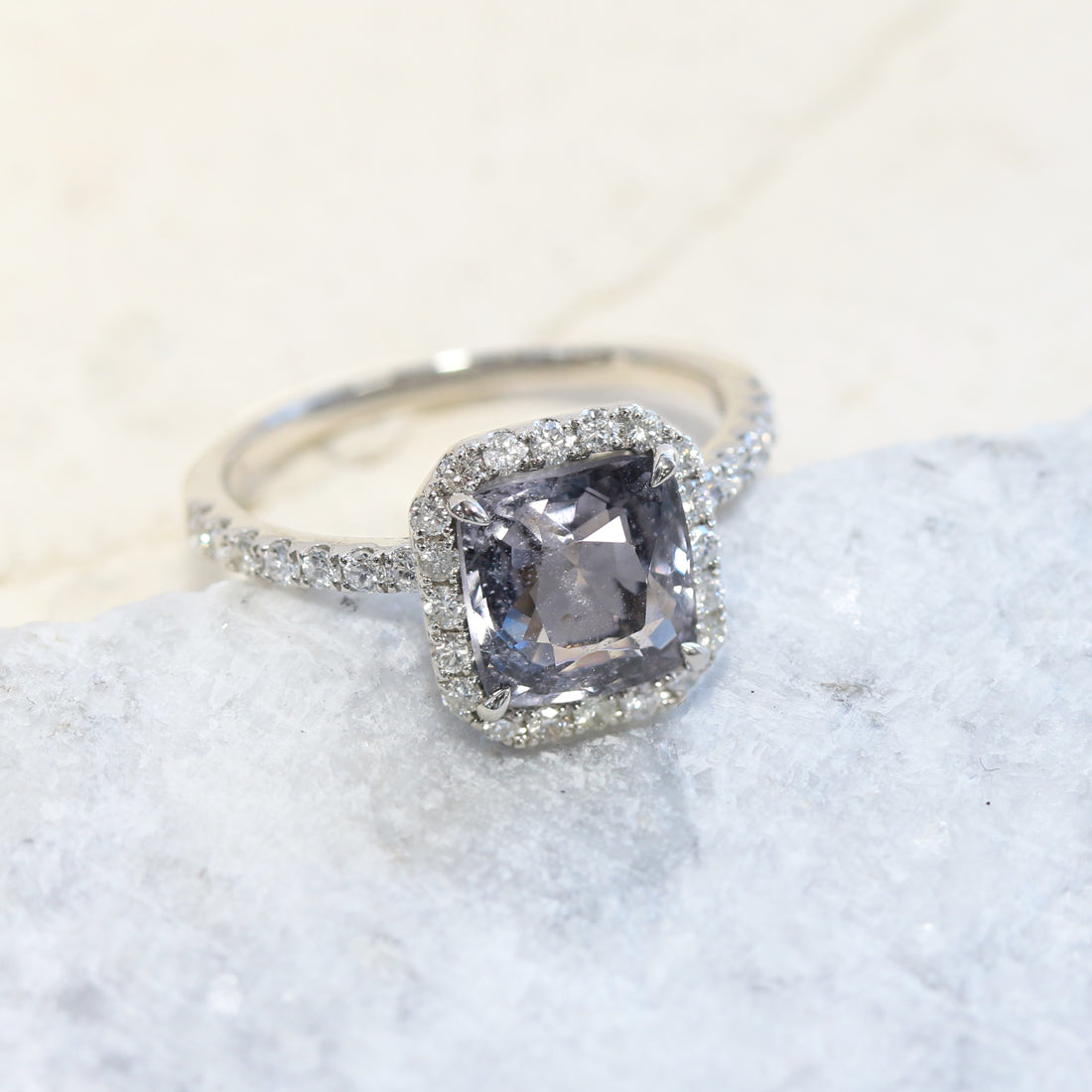 柔らかなグレーの輝きを湛え、静かな気品をまとったグレースピネル。