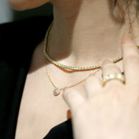 眩い虹色の煌きをたっぷりと放つダイヤモンドネックレス。