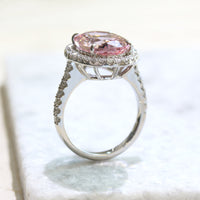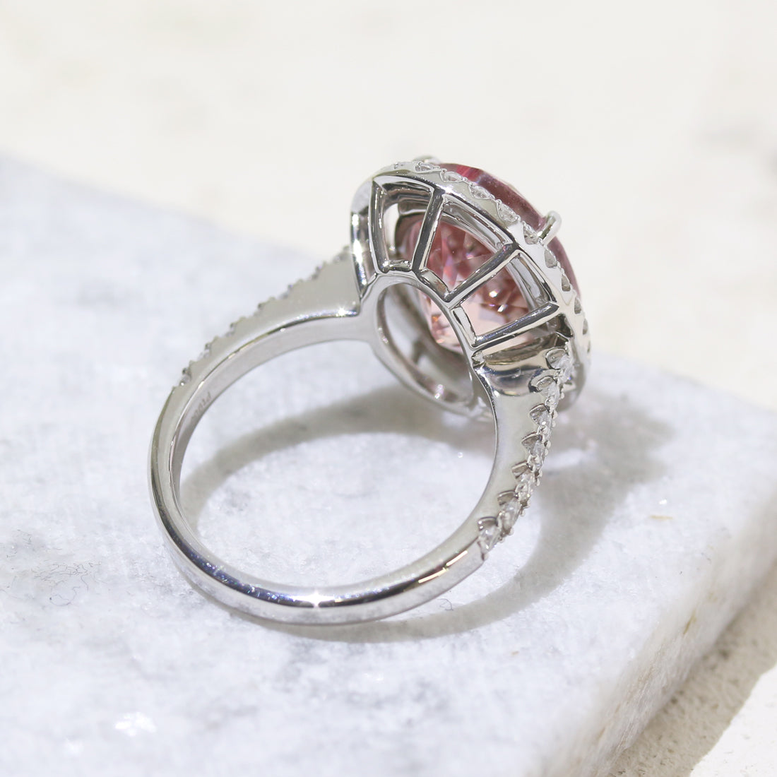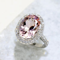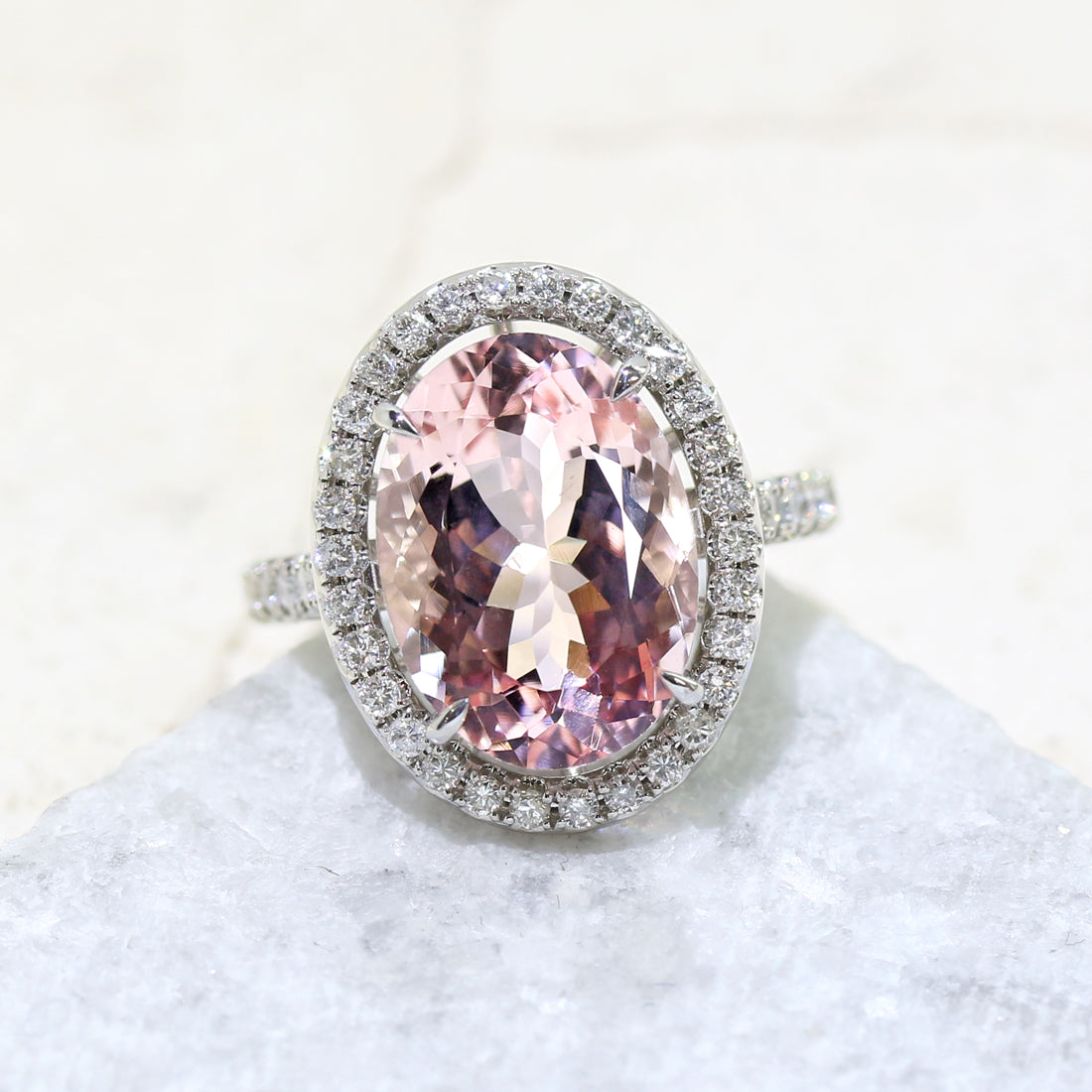 大粒のオーバルカットのモルガナイトが主役となったこちらのリングは、ひと目で心を奪われるほどの存在感を放ちます。