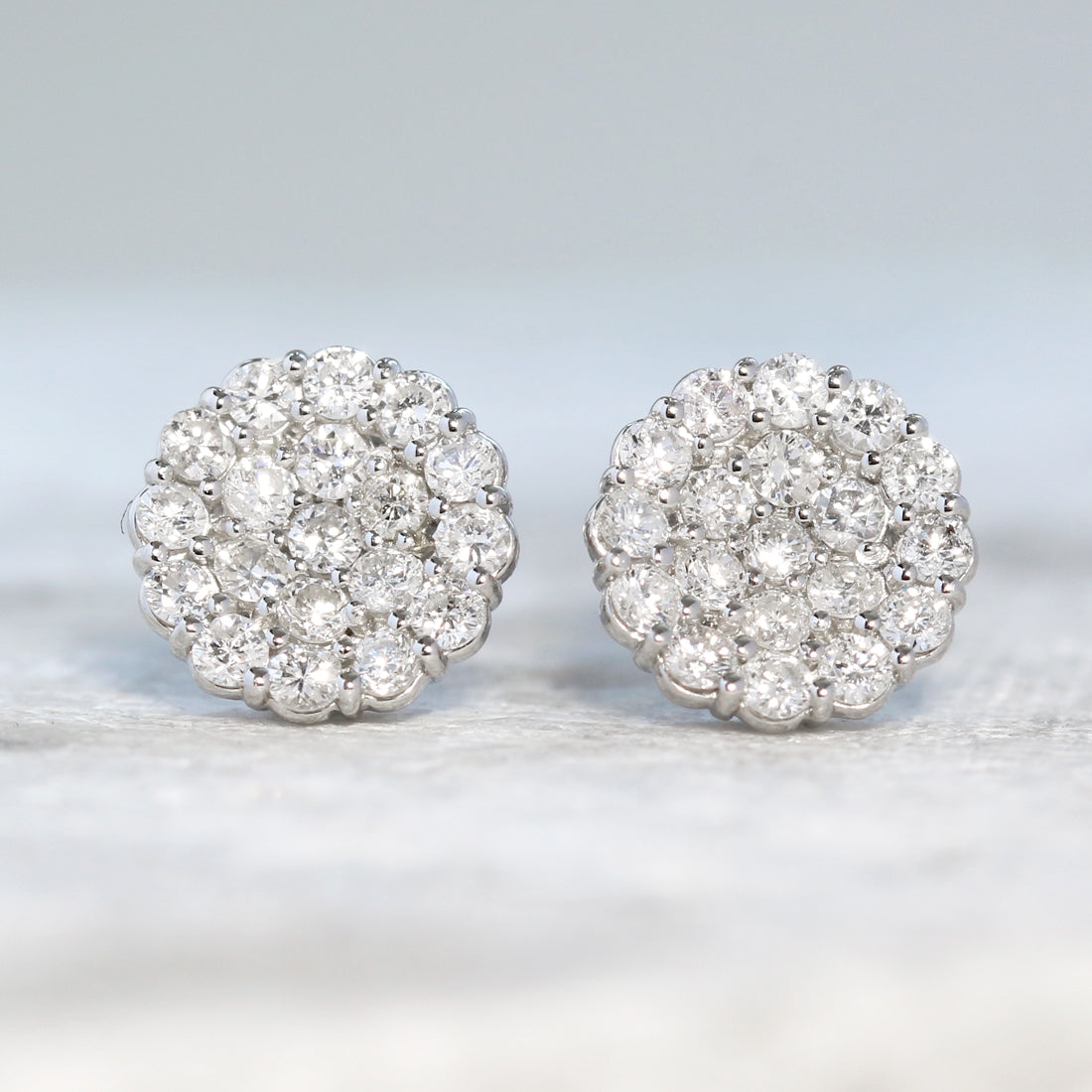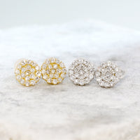 繊細に輝くダイヤモンドをぎっしりと敷き詰めたスタッドピアス。シンプルなデザインながらも鮮烈なファイアがとても華やかです。上品さと可愛いさを兼ね備えたピアスはシーンを問わずお使いいただけます。
