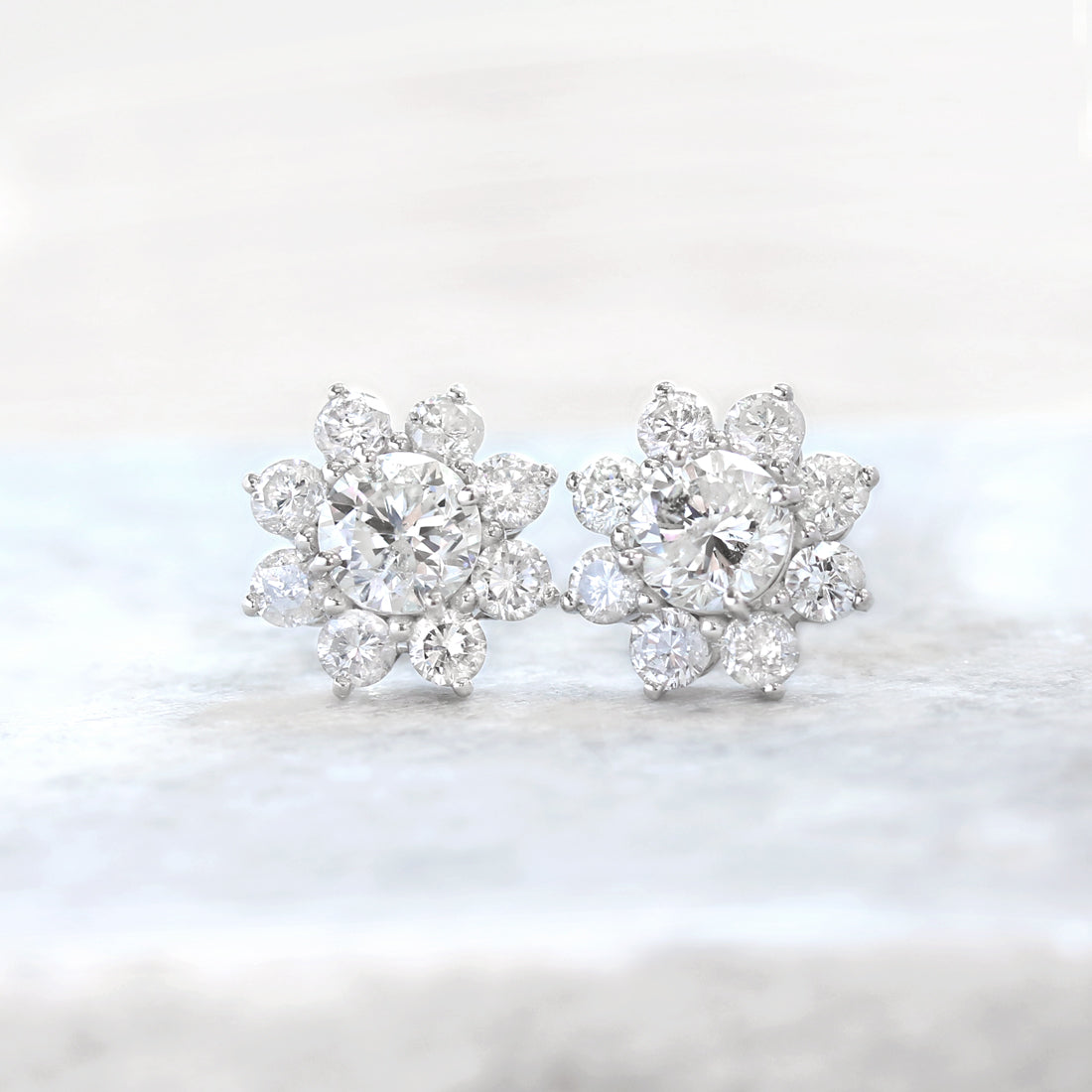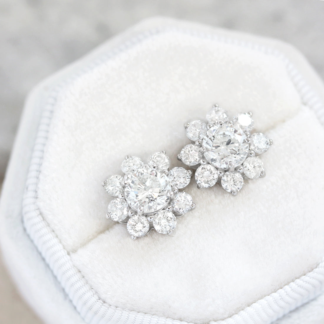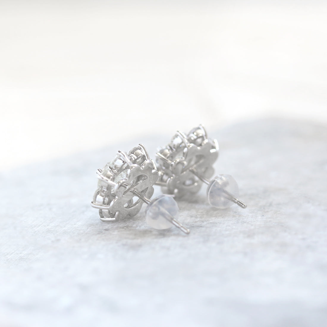 1ctアップのセンターダイヤモンドが堂々とした輝きを放つ、フラワーダイヤモンドピアス