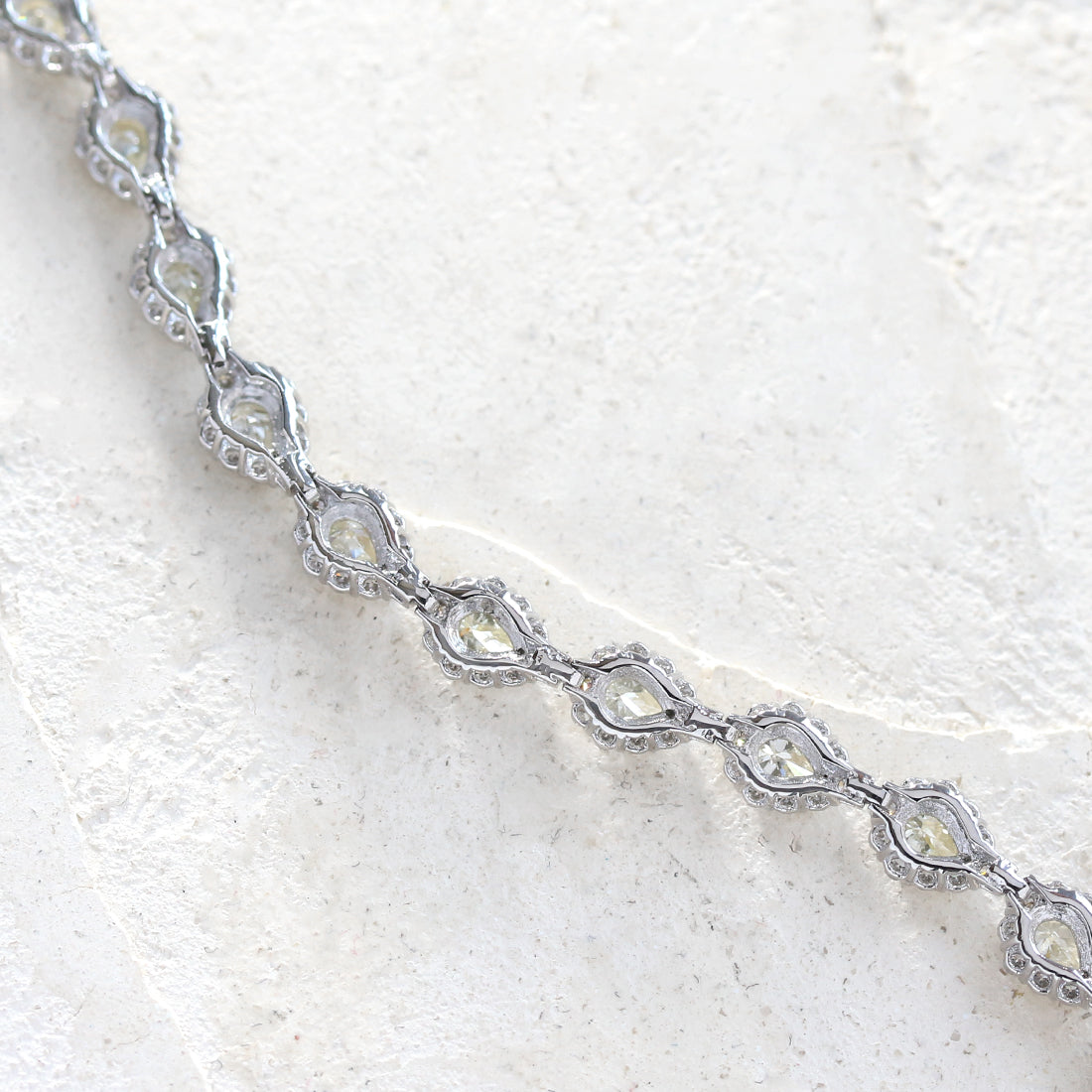 ふんわりとイエローを纏ったペアシェイプカットダイヤモンドを贅沢に連ねた、極上フルダイヤモンドブレスレット。