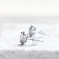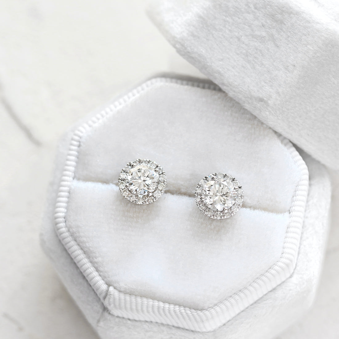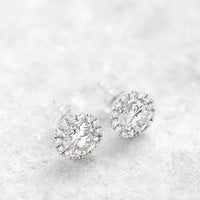さらにメインダイヤモンドのまわりを取り囲むメレダイヤモンドが光を集め、シンプルかつ圧倒的な輝きが品よく華やかに耳元を彩ります。