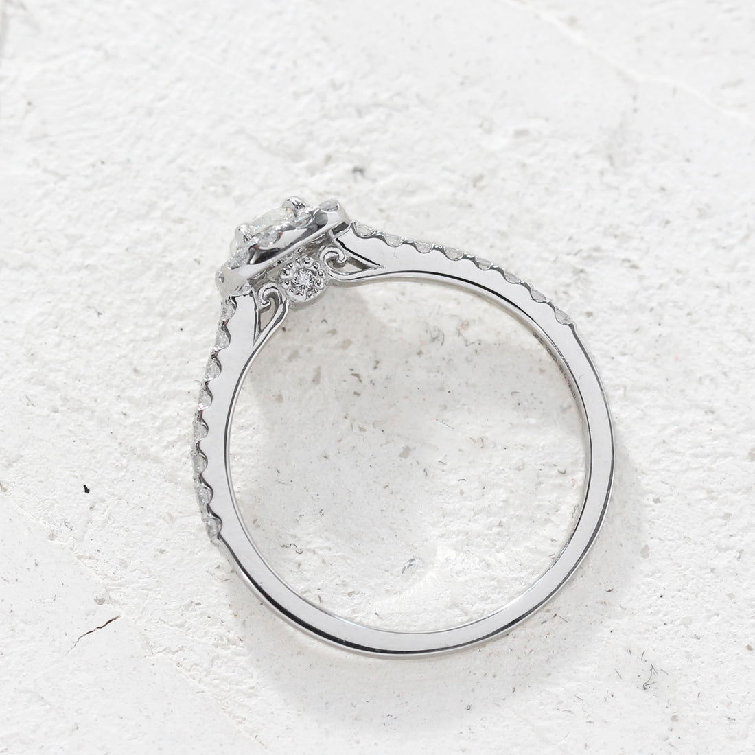 アームだけではなく、リングの腰にもダイヤモンドを忍ばせ、どこから見ても美しいプロポーション。