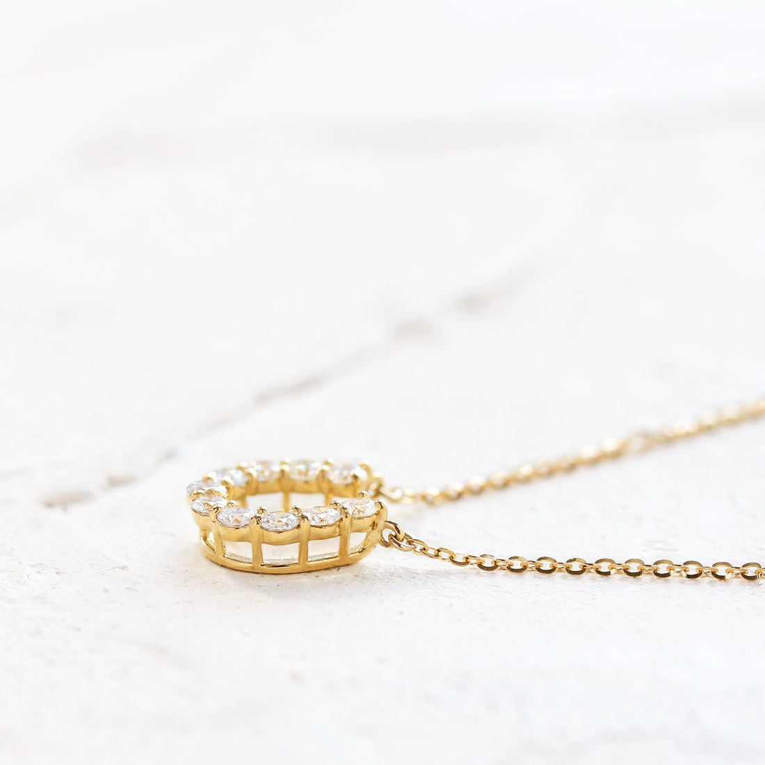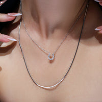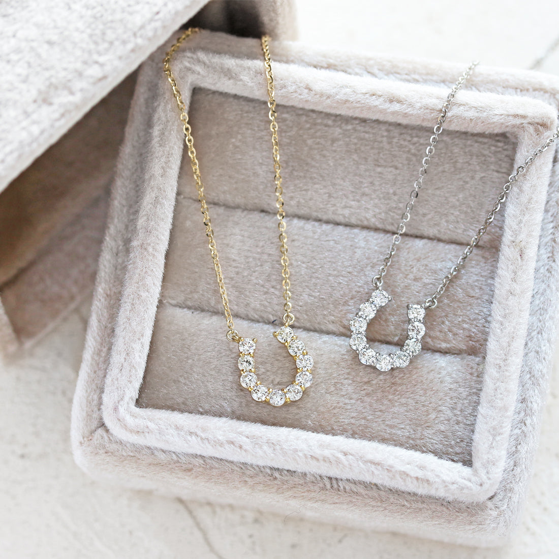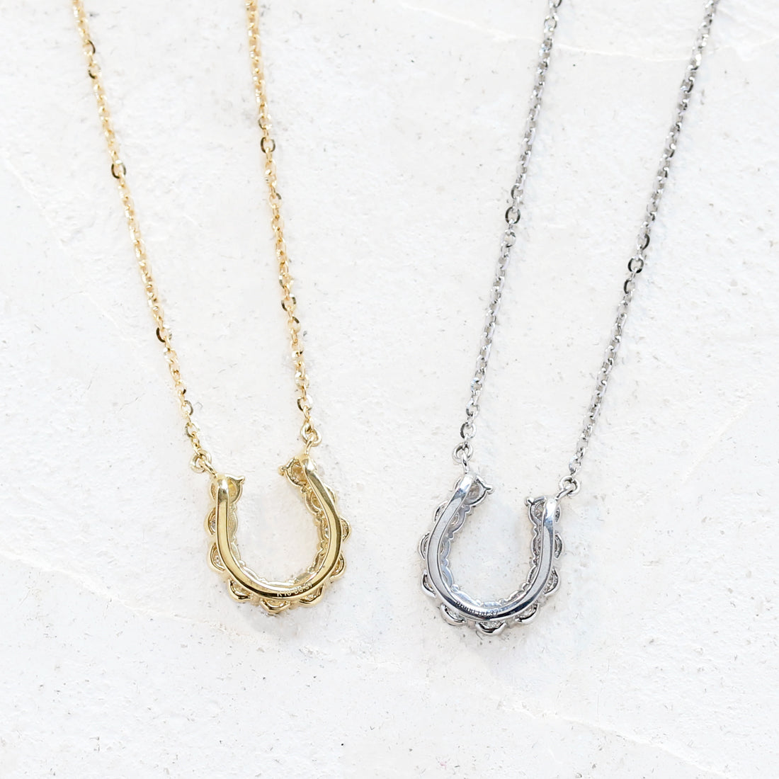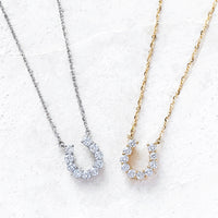 洗練された馬蹄モチーフが胸元で輝くダイヤモンドネックレス。