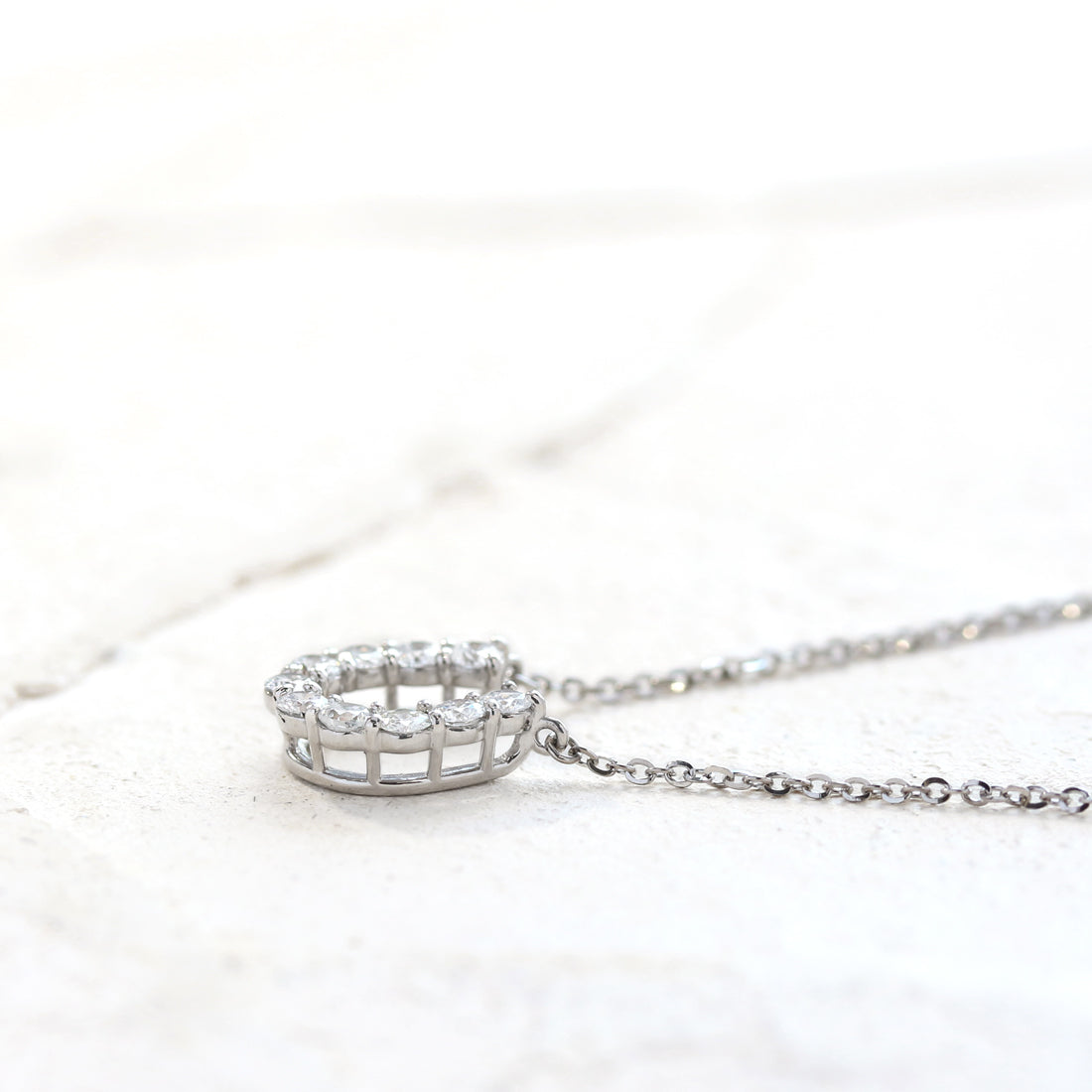 すっきりとした透明感のダイヤモンドひとつひとつが光を反射し、繊細でクリアな煌めき溢れる仕上がりに。