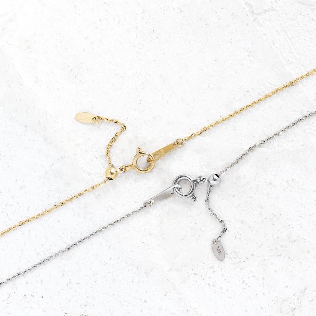 チェーン 約46cm(調節可能) トップ 約H 10.0mm×W 9.6mm 重量 (1)約1.9g (2)約2.6g |