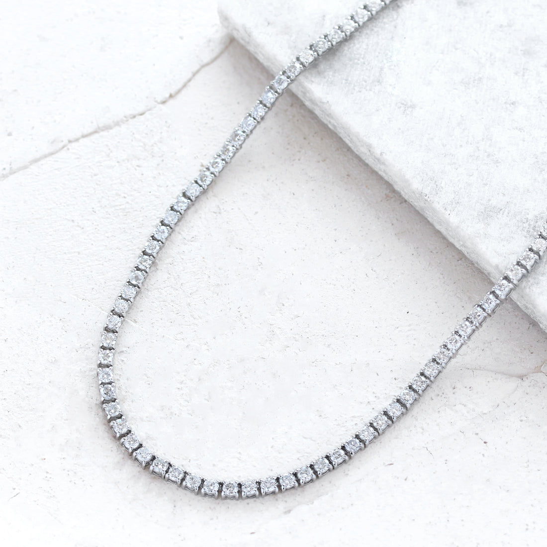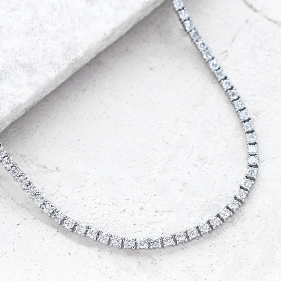 ファイアが煌めく上質なダイヤモンドを、惜しみなくグルっと一周使用したダイヤモンドネックレス。