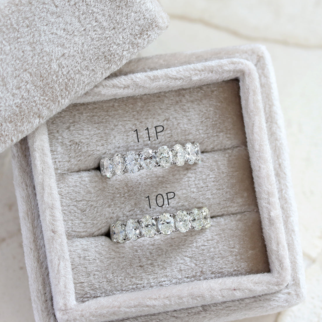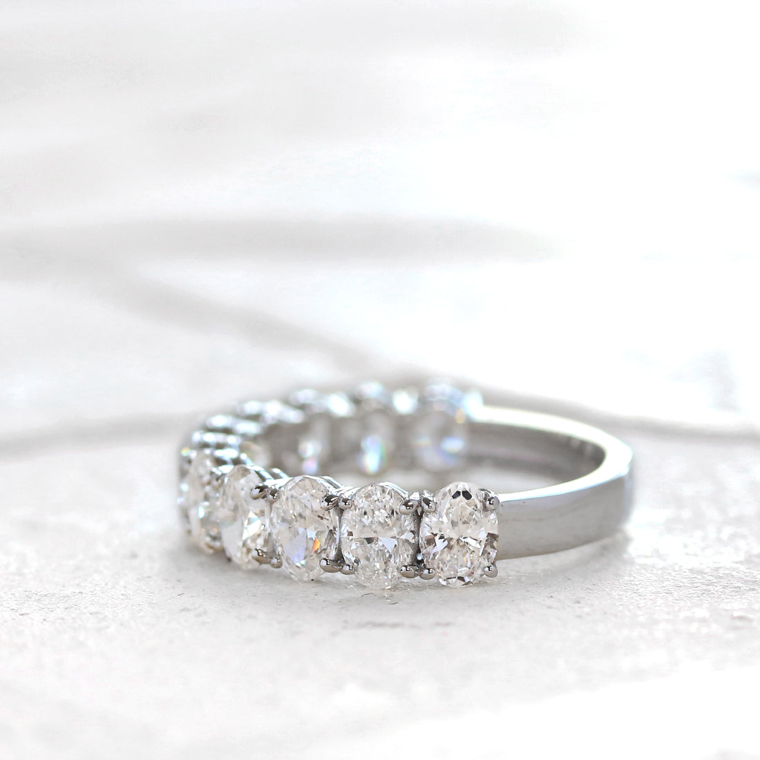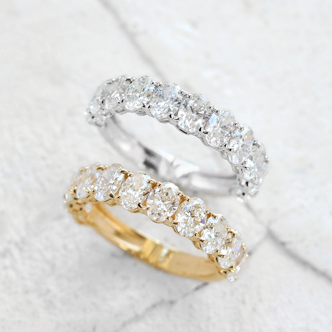 一石一石がみずみずしく煌めく、オーバルカットダイヤモンドを贅沢に11石並べたハーフエタニティリング。