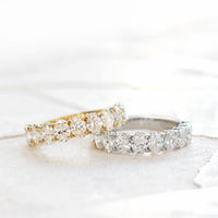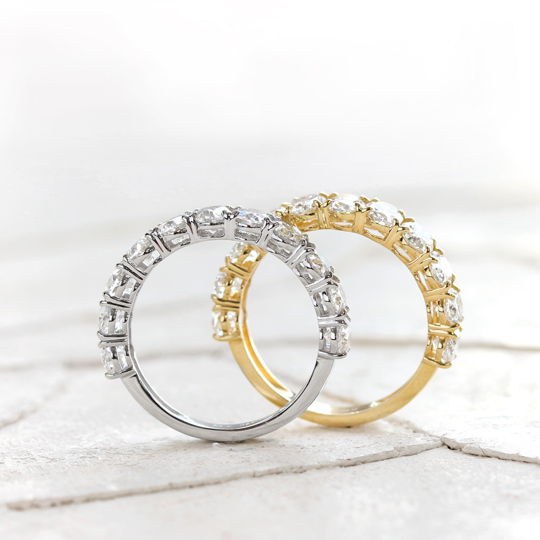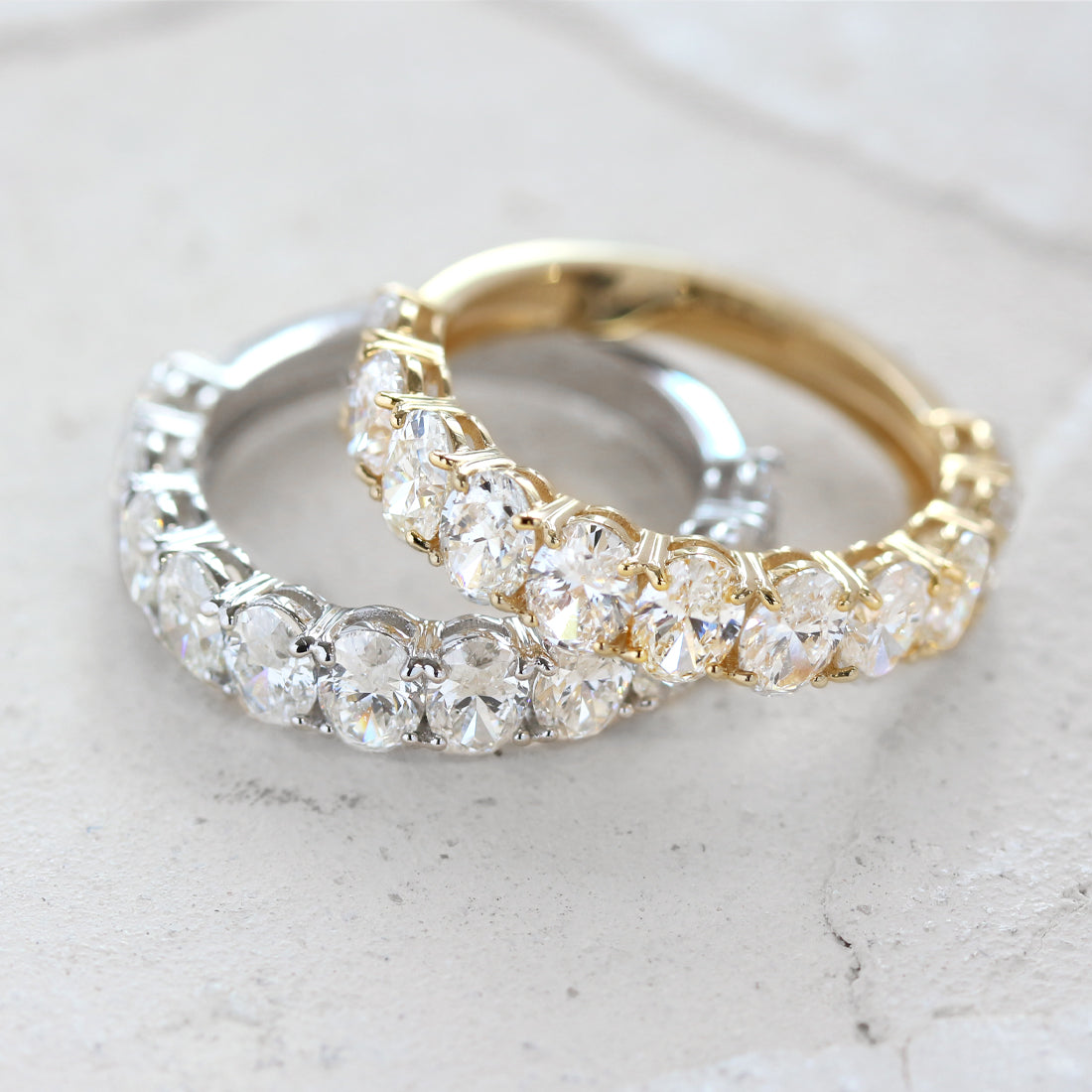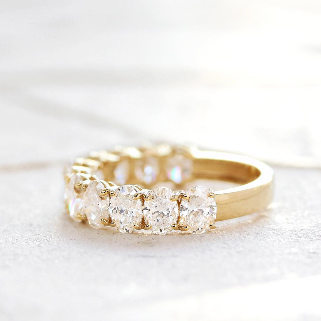 一石一石がみずみずしく煌めく、オーバルカットダイヤモンドを贅沢に11石並べたハーフエタニティリング。