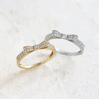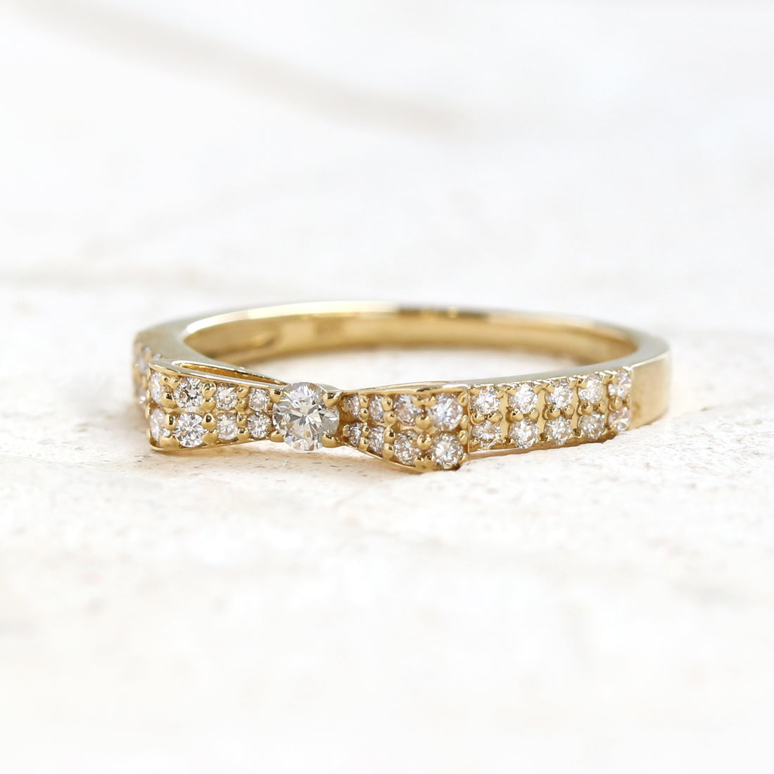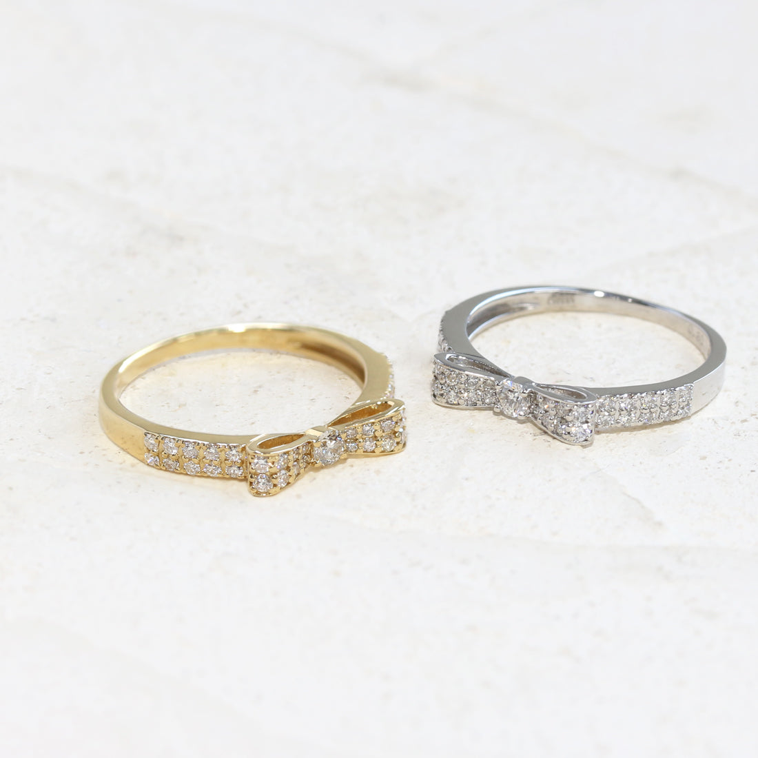 眩い虹色の輝きを放ち、ダイヤモンドリボンリング。 キラキラ