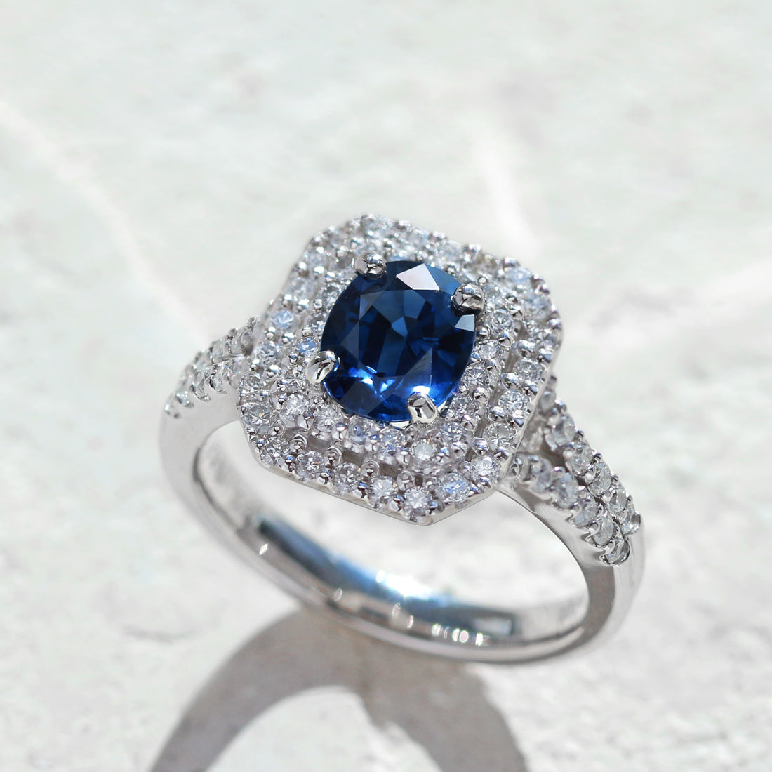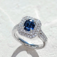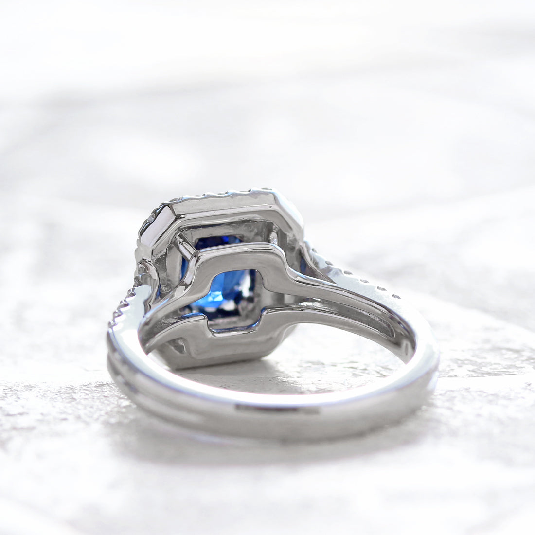 深く濃厚なブルーが印象的な、王道サファイアリング。