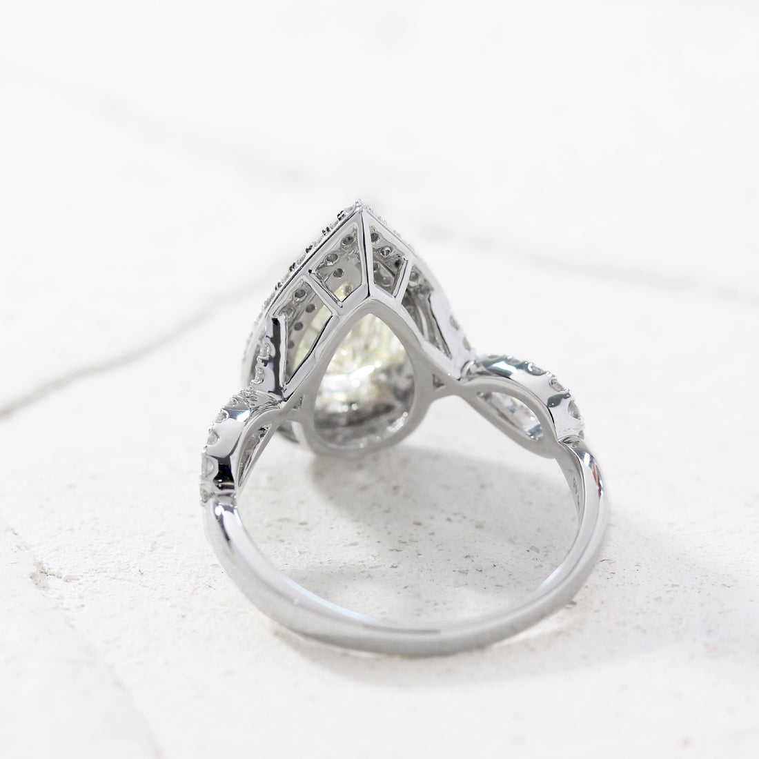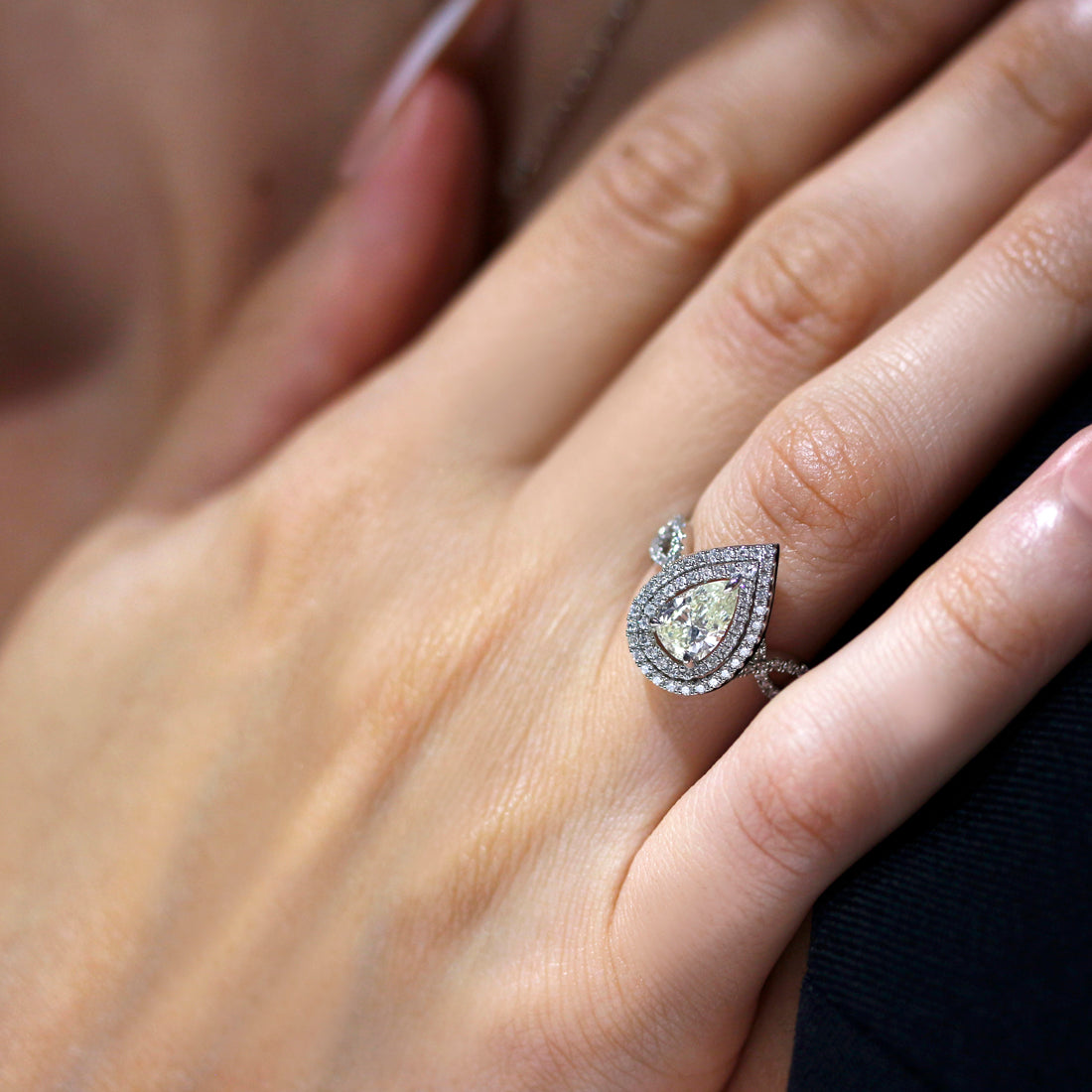 滑らかな曲線とシャープな先端のバランスが見事なペアシェイプカットにより、奥行き感のある繊細で華やかなきらめきが絶え間なく溢れます。