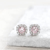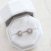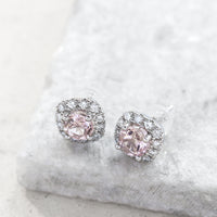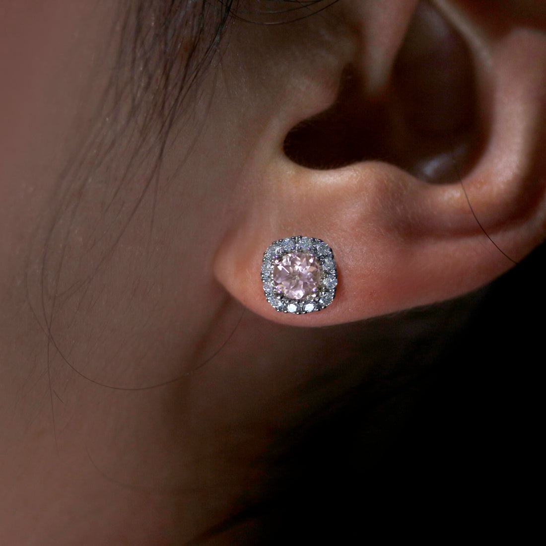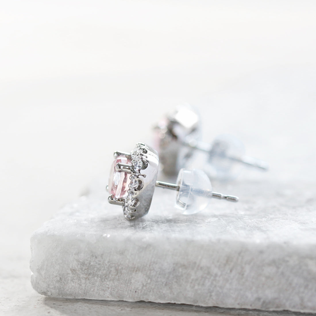 すっきりとした透明感と、淡いピンク色が上品に煌めくモルガナイトピアス。