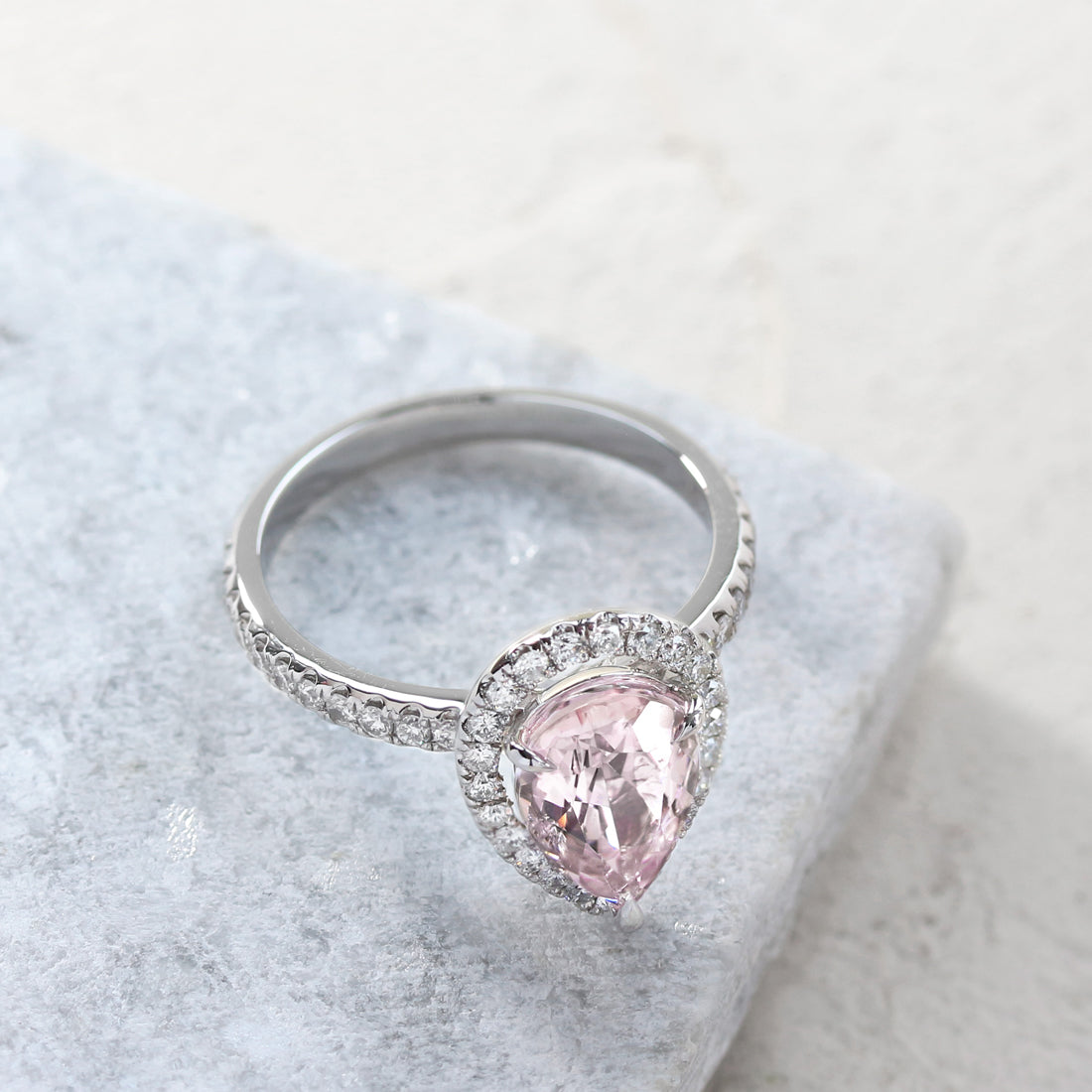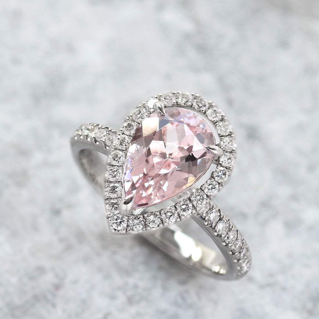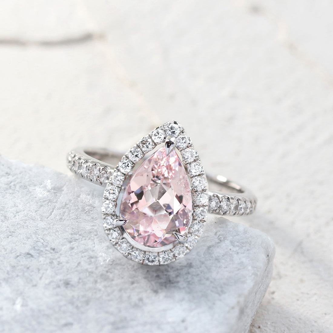 朝露のようなペアシェイプ(ティアドロップカット)のモルガナイトリング。