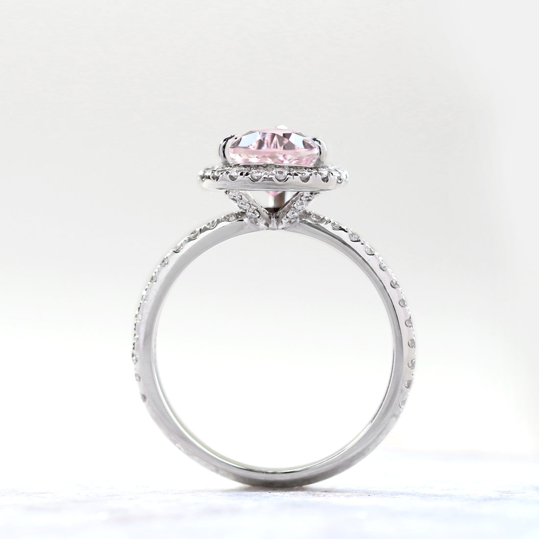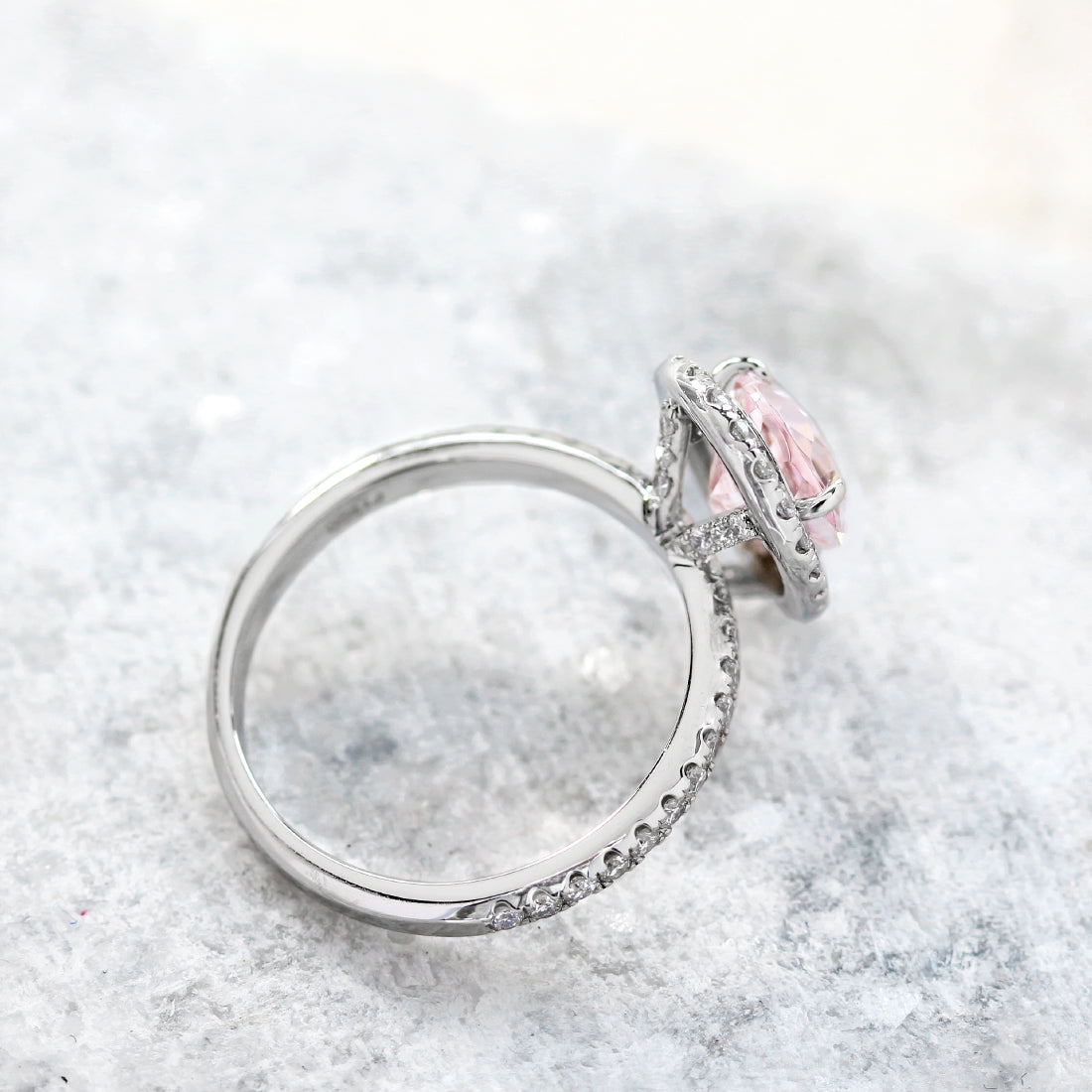 みずみずしくすっきりとした透明度に優しいピンクのカラーが広がり、動かすたびに複雑なカット面から"鏡の世界"のような奥行きある煌めきが踊る、非常に美しい逸品です。