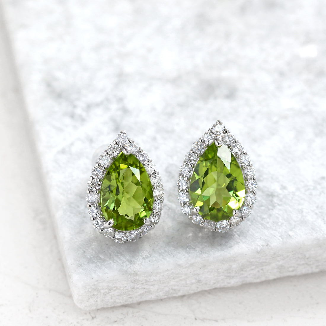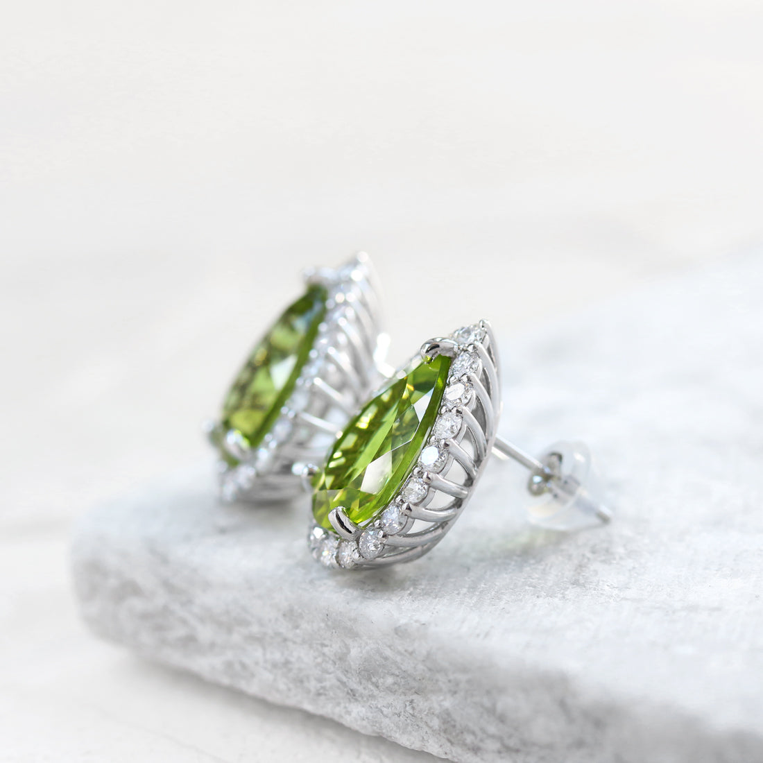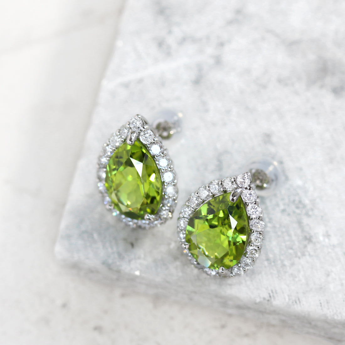ペアシェイプ ペリドットピアス PT