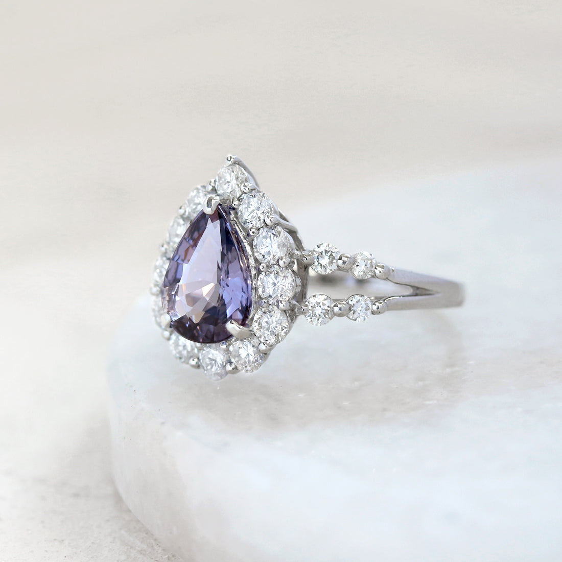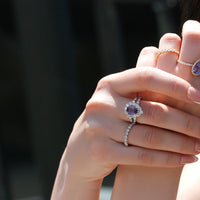 ミステリアスで奥行きのある紫色が魅力の希少石。透明感と高い輝きを持ちながら、より落ち着いた気品と静かな情熱を感じさせます。