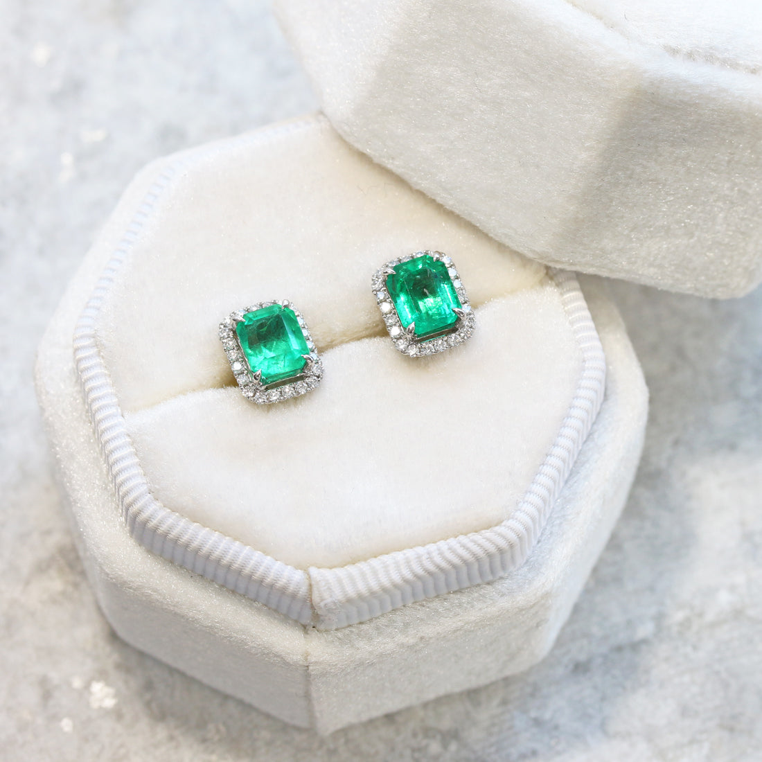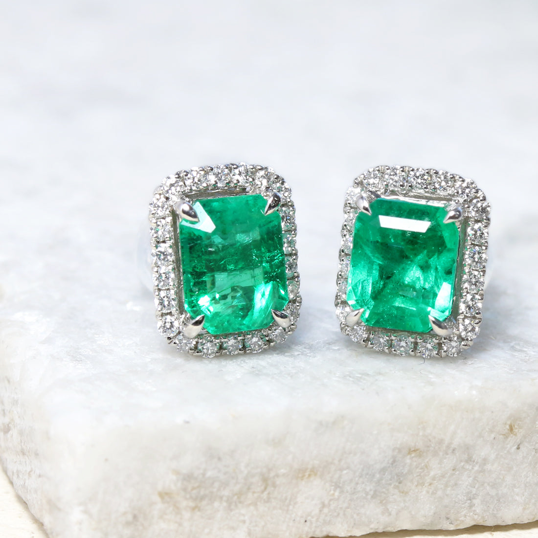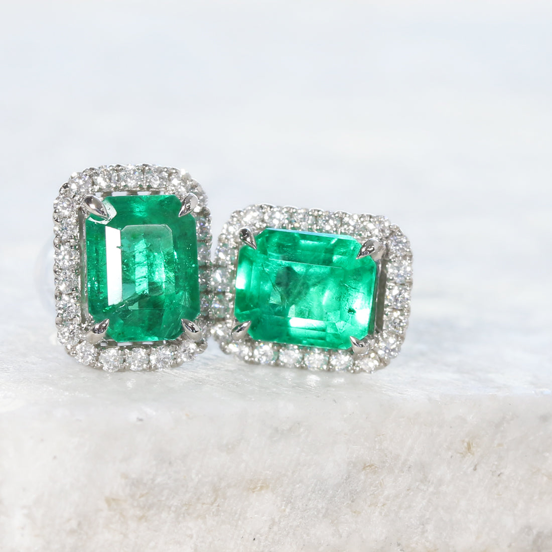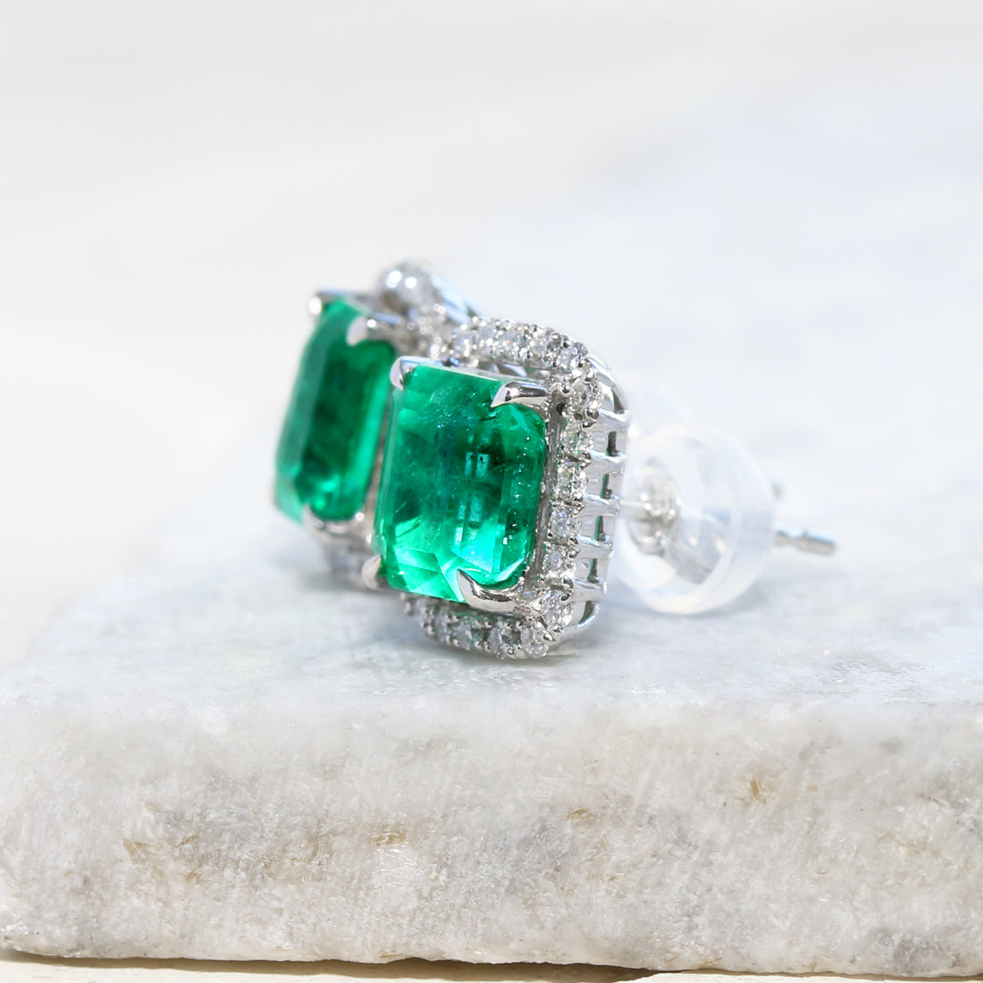 深みのある鮮やかなグリーンが印象的な、エメラルドピアス。