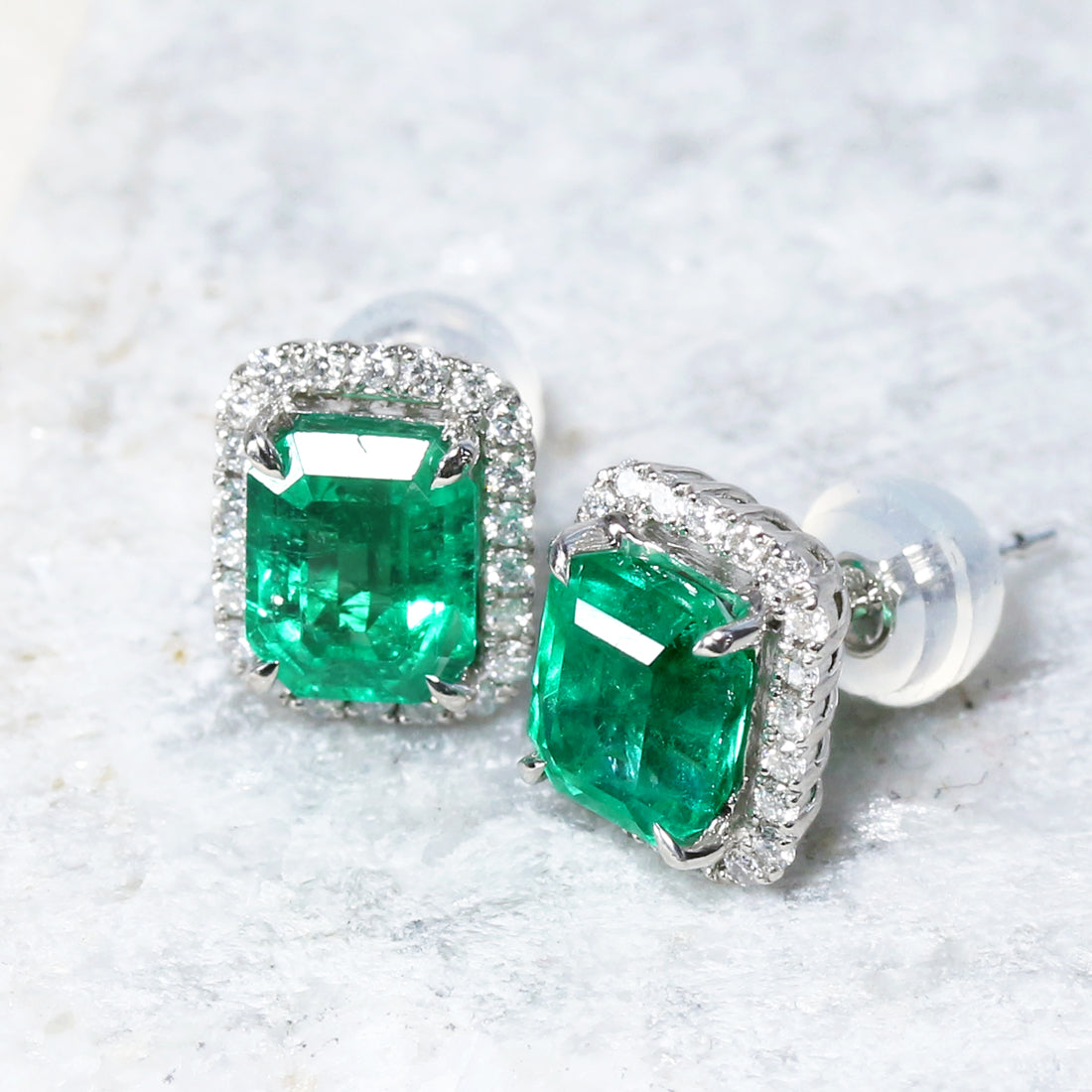 スクエアエメラルドピアス PT