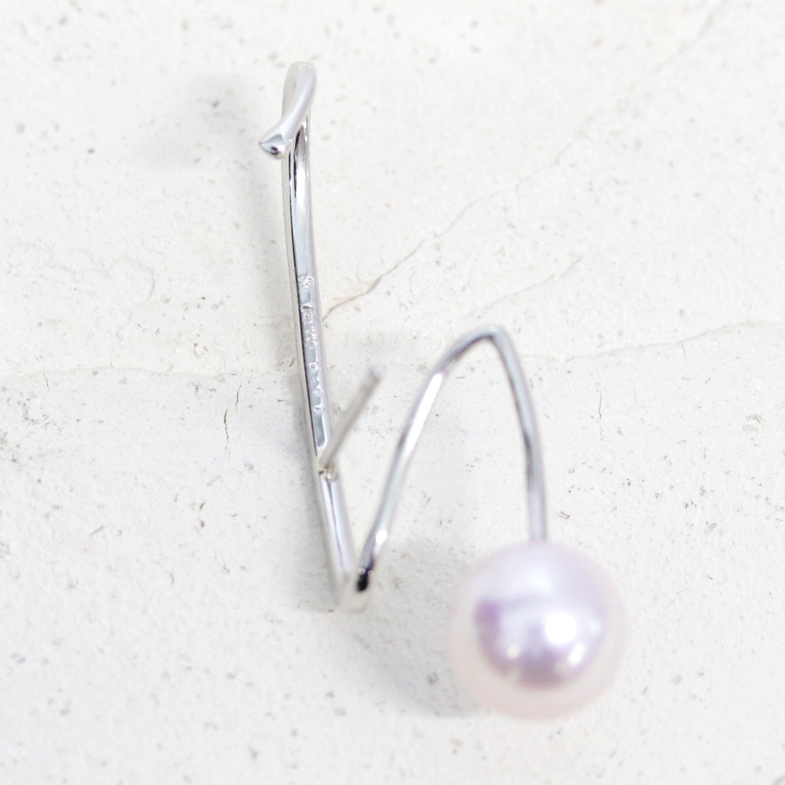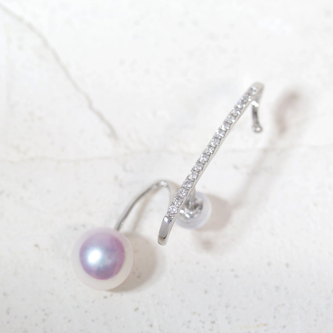 美しいオーロラが現れる、あこやパールを使用したパールピアス。滑らかな曲線にはダイヤモンドをセッティング致しました。思わず踊ってしまいそうになる独創的なデザインは唯一無二。 ジュエリーコーディネートが楽しみになる、そんなジュエリーでございます。 ※此方は片耳用(左)の販売となります。※