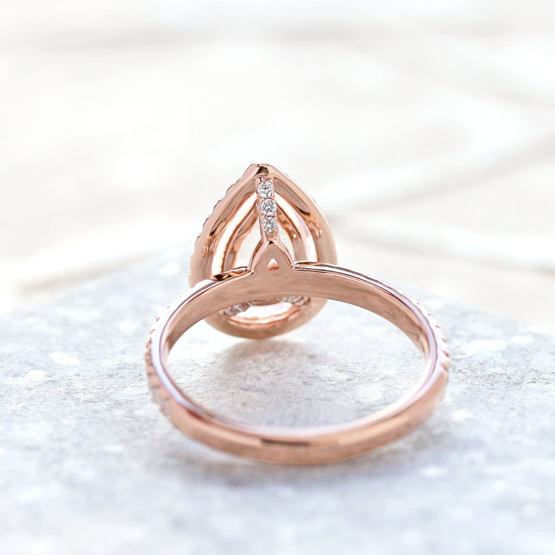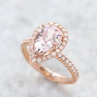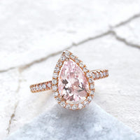 朝露のようなペアシェイプ(ティアドロップカット)のモルガナイトリング。