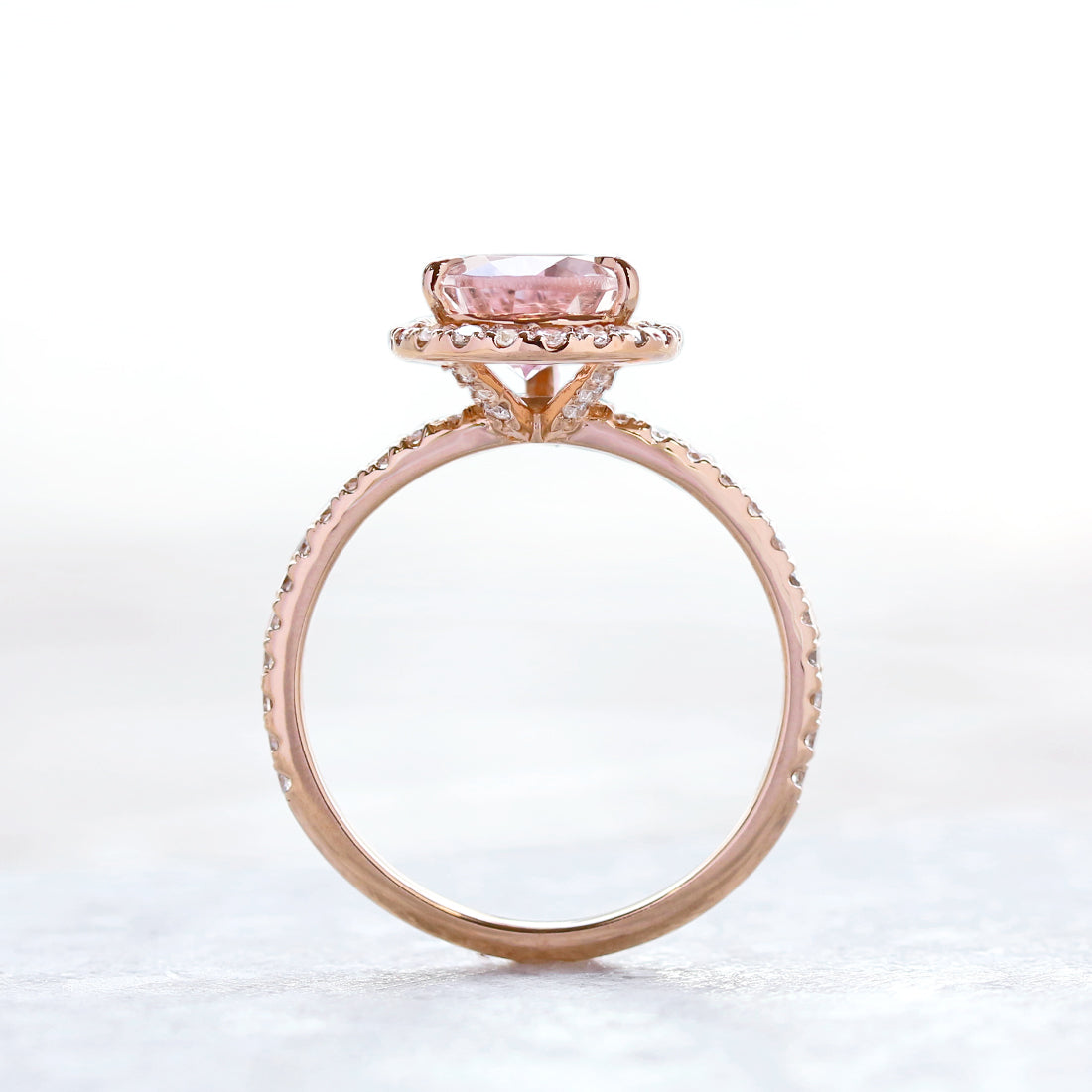 ピンクゴールドのやわらかな色味が肌になじみ、モルガナイトの優しいピンクと寄り添うように溶け合った、女性らしい品格を感じさせるリングです。