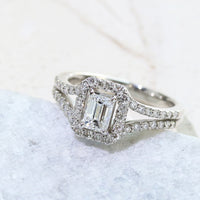 周囲を取り巻くメレダイヤモンドも繊細に輝き、メインダイヤモンドの存在感をより一層引き立てています。